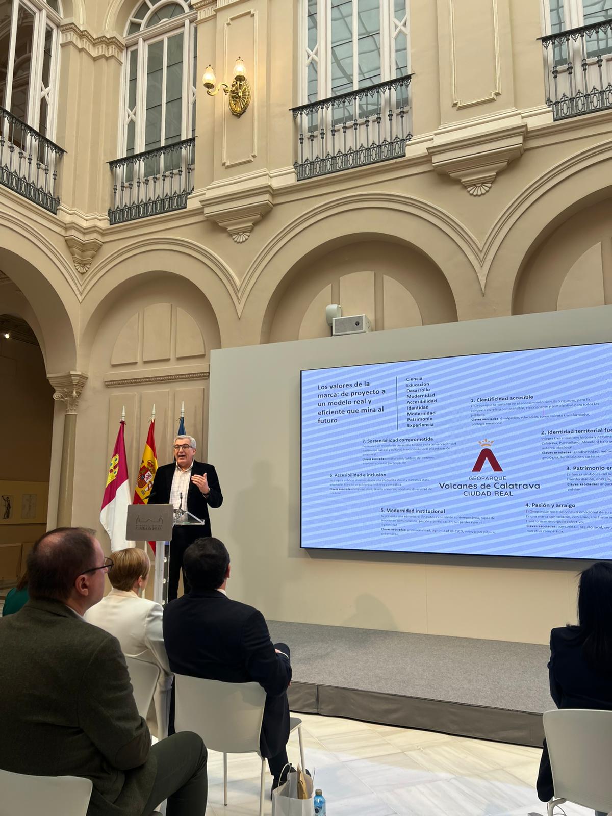 Especial incidencia ha hecho la vicepresidenta en la nueva marca que se inspira en los tres grandes momentos geológicos del Geoparque Volcanes de Calatrava-Ciudad Real, “mercurio, como huella de la minería histórica. Carbón, asociado a la relación entre geología, industria y paisaje humano. Magma, símbolo del volcanismo más reciente y núcleo identitario del Geoparque. Deja de ser un proyecto técnico para convertirse en un proyecto de territorio compartido, con la ciencia como aliada para conectar paisaje, identidad y economía local”.